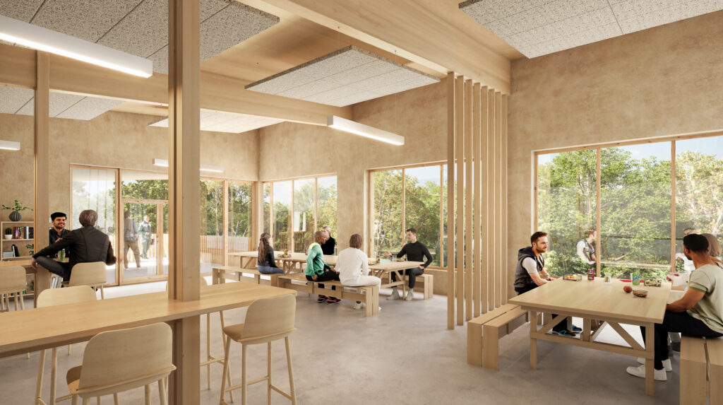 Notre intention était de proposer un centre technique fonctionnel qui s’insère délicatement dans son site, associé à une architecture homogène et sobre, à l’image des engagements environnementaux de la ville de Nantes, notamment en atteignant le niveau E4C2, par l’utilisation du bois en structure, de la paille en isolation et de la terre en enduit intérieur.
