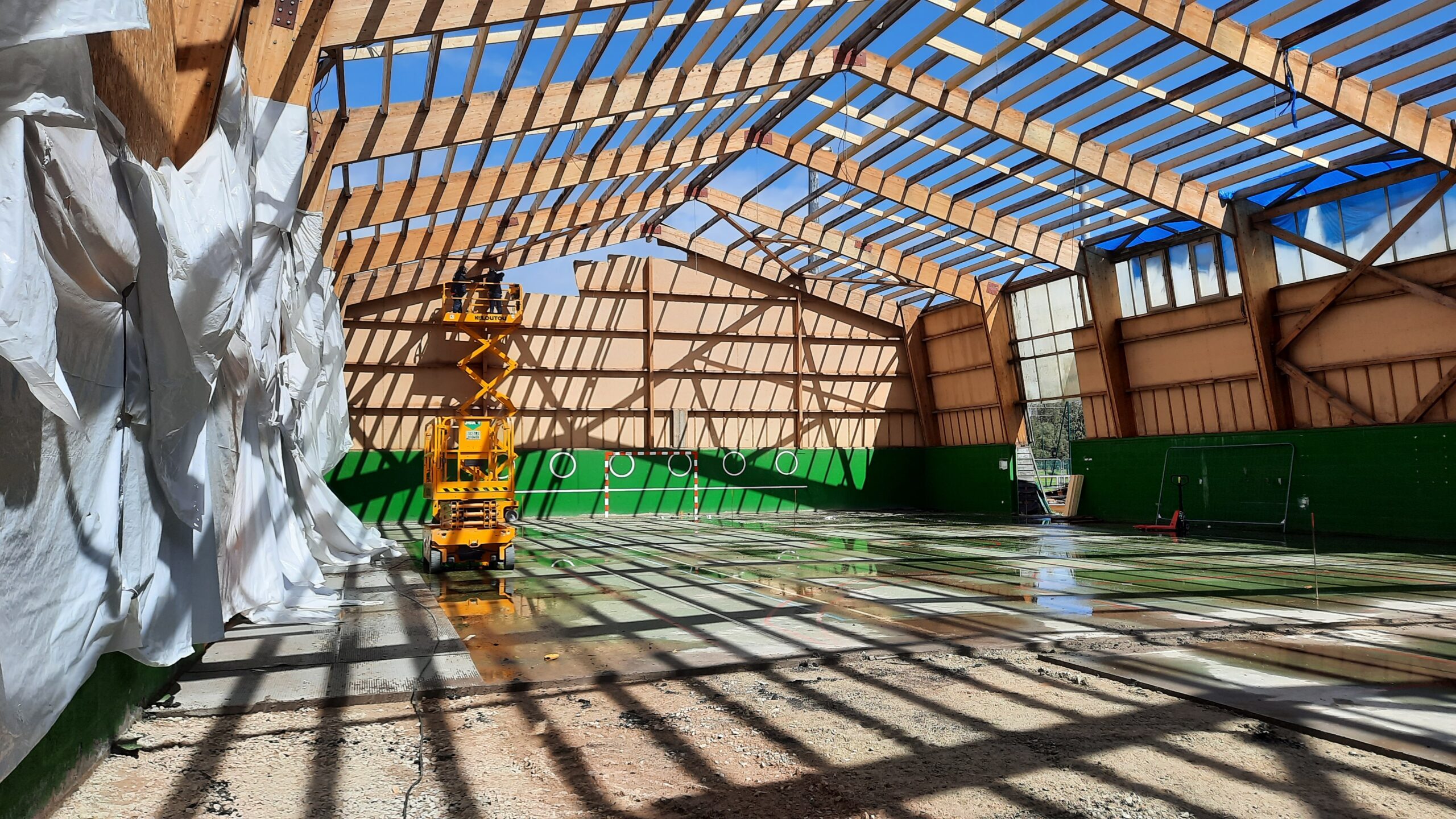 – le toit, laisse filtrer le ciel par des bandeaux translucides.