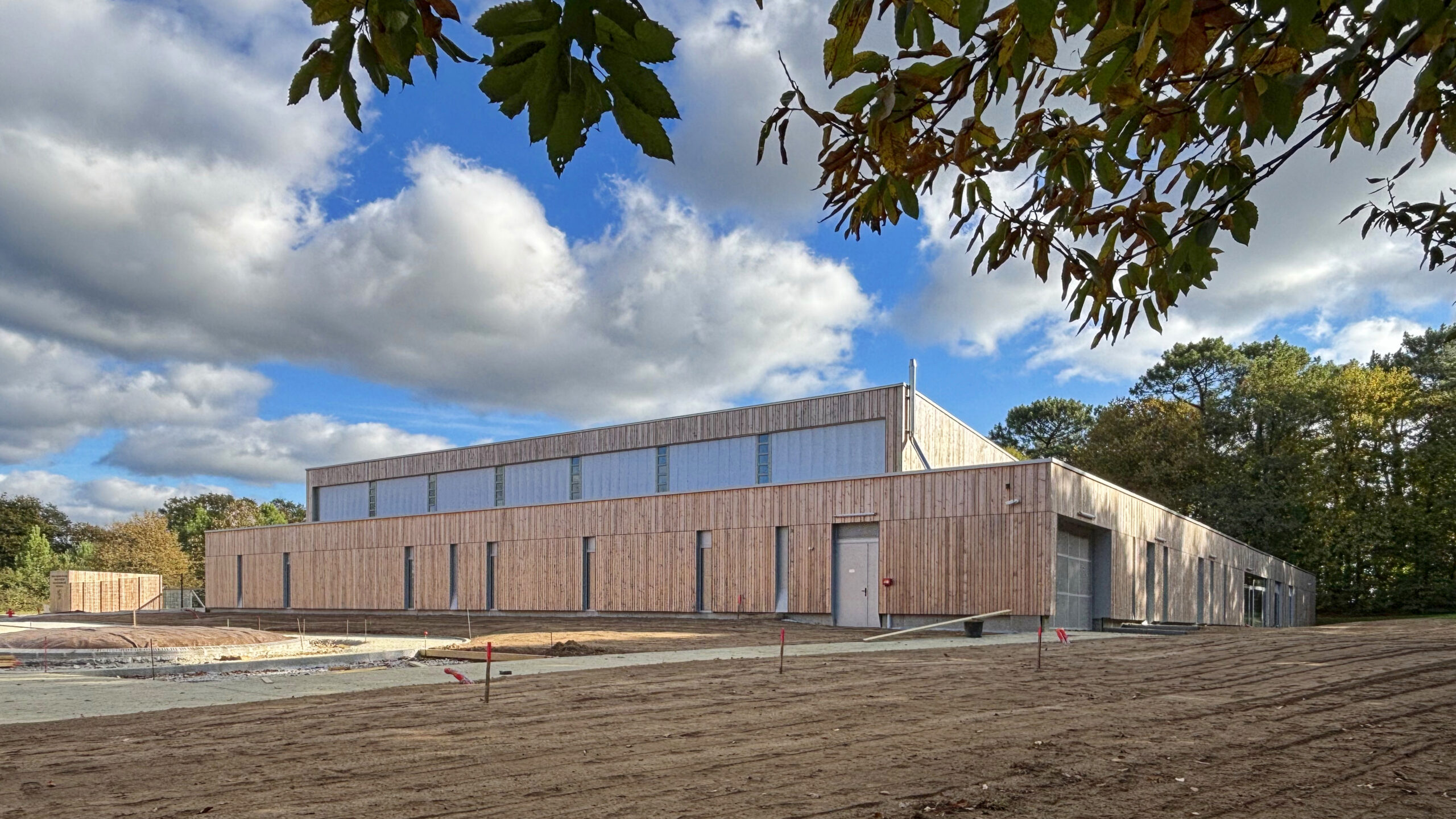 Le nouveau Centre Technique de Plescop s’intègre dans un site végétalisé et arboré existant et entre en dialogue avec la future salle de raquettes.