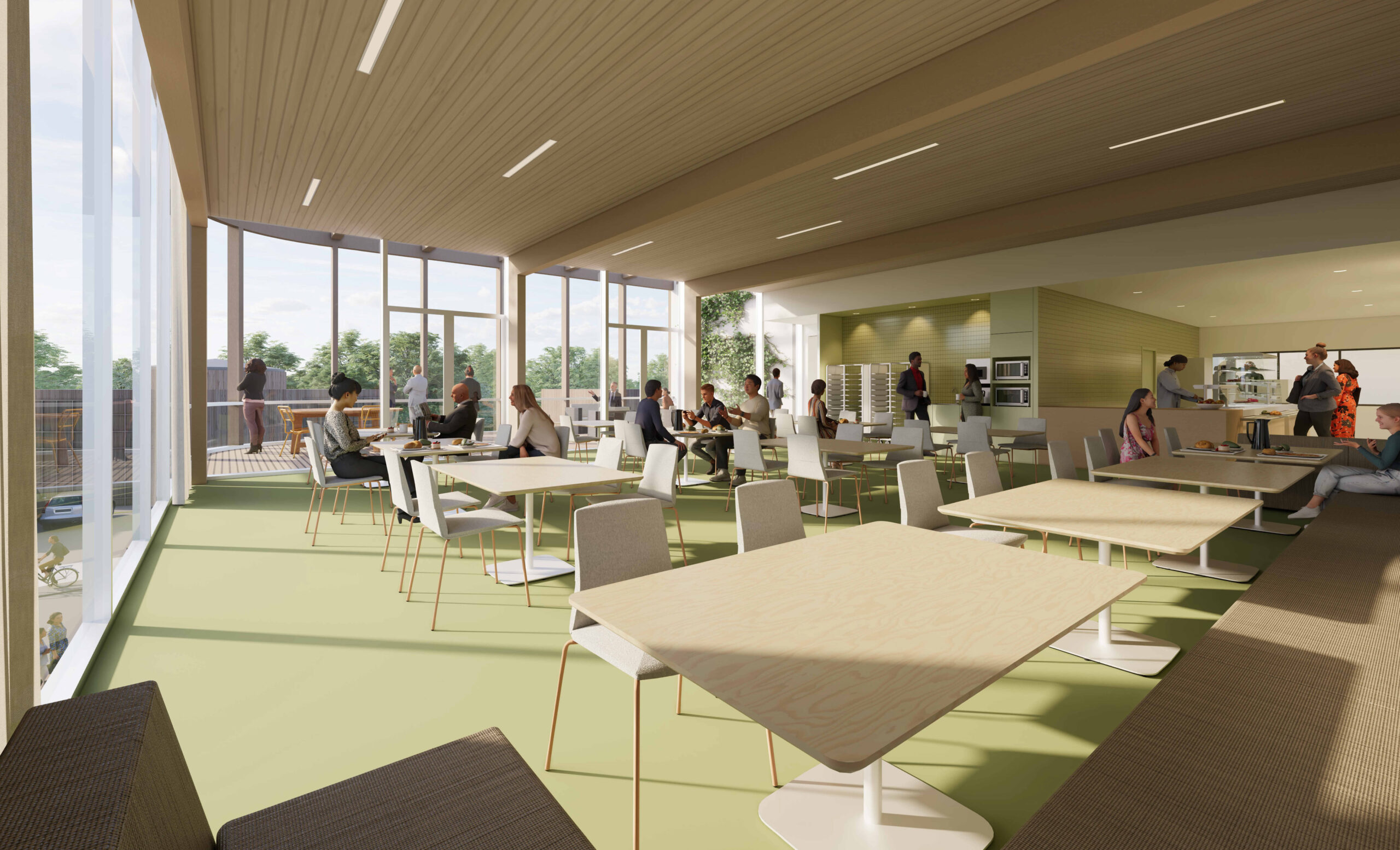 Nous avons eu à cœur de conférer aux espaces du projet une Haute Qualité d’Usage, des espaces ergonomiques, chaleureux, avec un apport généreux de lumière naturelle et un traitement acoustique optimum. Un équipement ouvert sur la ville, placé sous le signe d’une pédagogie bienveillante et d’une forte qualité environnementale à l’intérieur comme à l’extérieur.